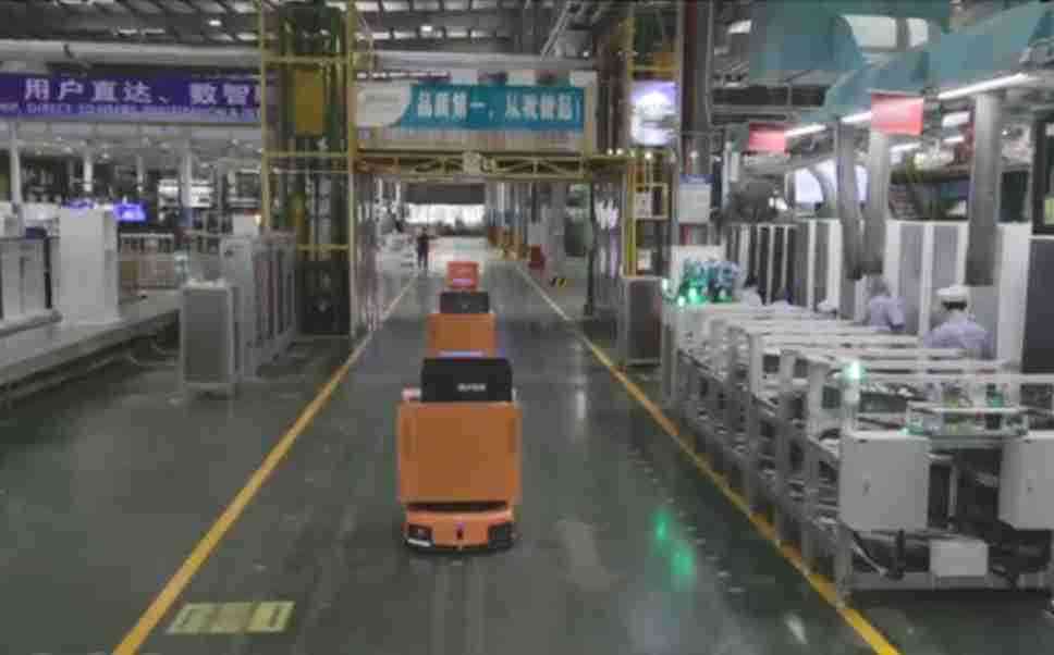 为车载冰箱物流配送打造的智能解决方案,,,包含产中物流通过潜伏举升AMR搬运至线边,,产后成品物流智能仓储,,,流程包含产中物流智能齐套入库,,,,线边安灯叫料AMR智能配送至线边,,成品入库、、、、出库,,,通过无人堆高车机器人,,,智能仓储管理替代人工作业管理,,,实现更高存储、、、、更高效率、、、更具柔性化的解决方案。。